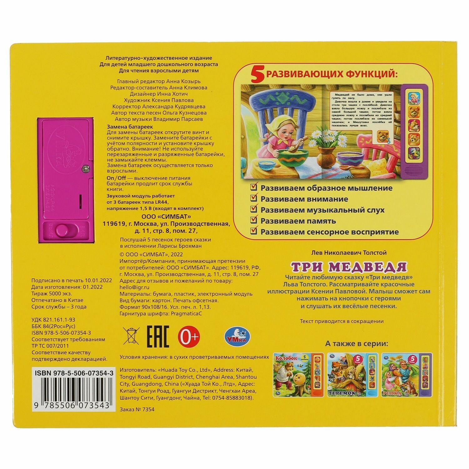 Три медведя. л.н. толстой (5 кн. 5 песен) 200х175мм 10стр Умка в кор.32шт (Толстой Алексей Николаевич); Умка, 2022