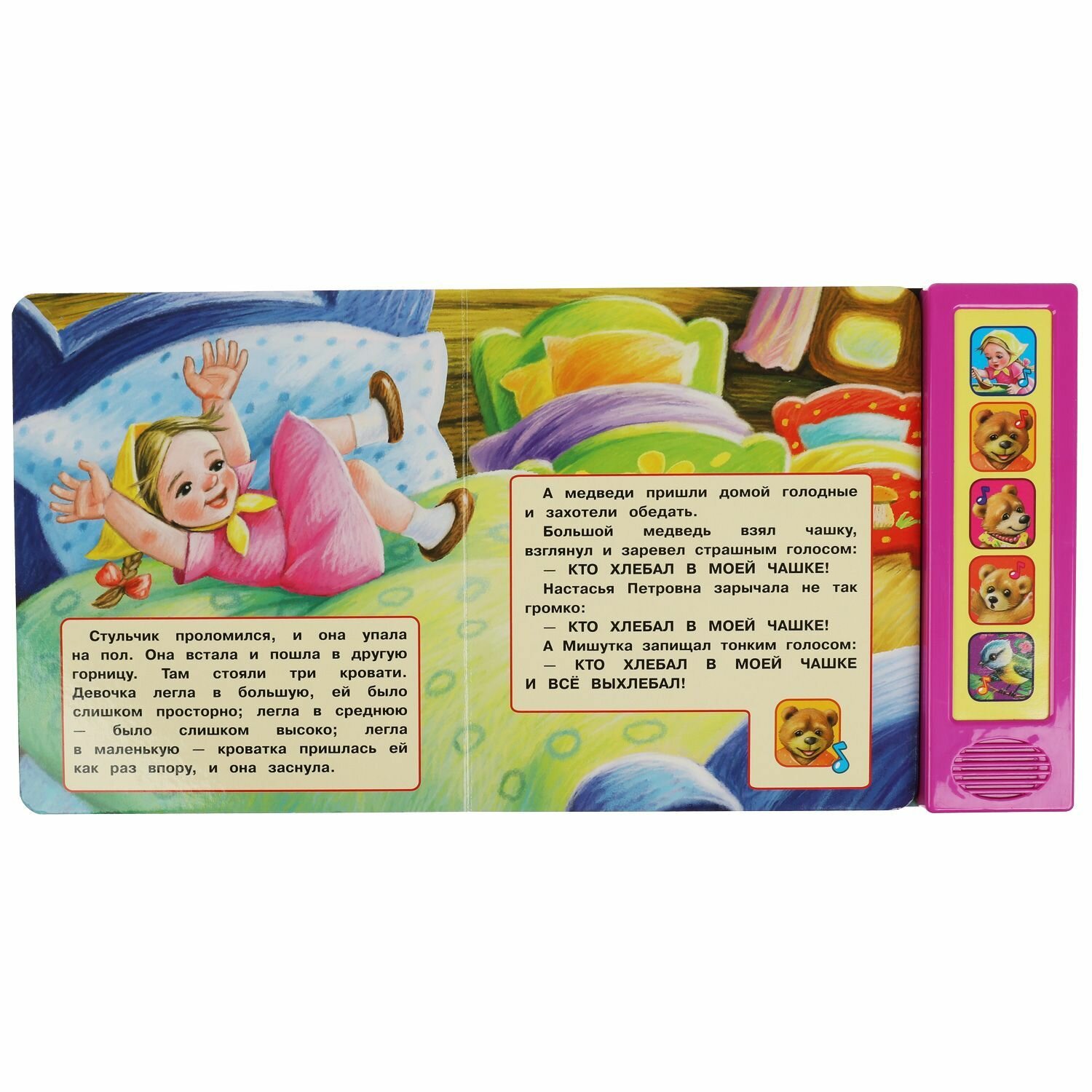 Музыкальная книга Л. Н. Толстой Три медведя - кладезь в мире чтения для маленьких любителей приключений. Вдохновленная всемирно известной сказкой, книга не только развивает детей, но и становится прекрасным выбором в качестве увлекательного подарка малышу.