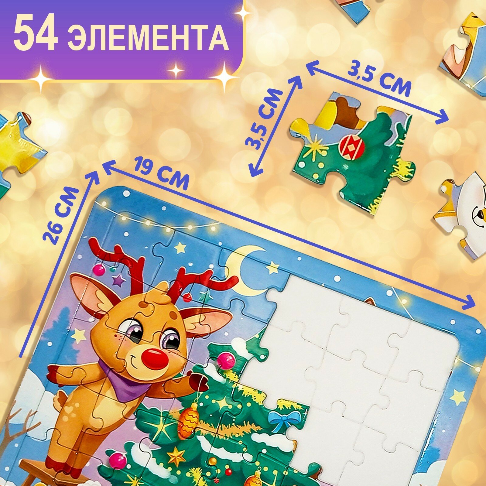 Большой волшебный пазл из 54 элементов на подложке из плотного картона, который поможет скрасить ожидание Нового года.