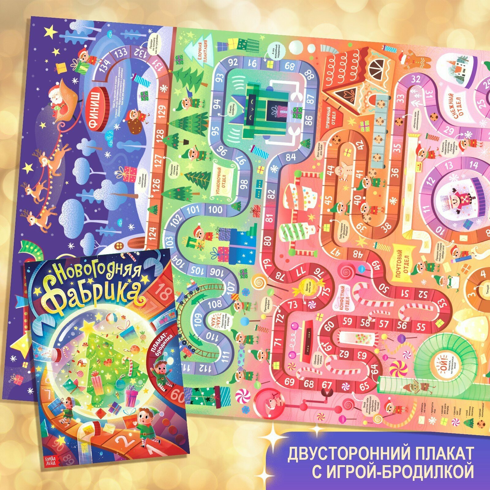 Огромная бродилка-плакат для всей семьи. Вам понадобится только кубик и фишки, чтобы отправиться на прогулку по волшебной фабрике Дедушки Мороза.