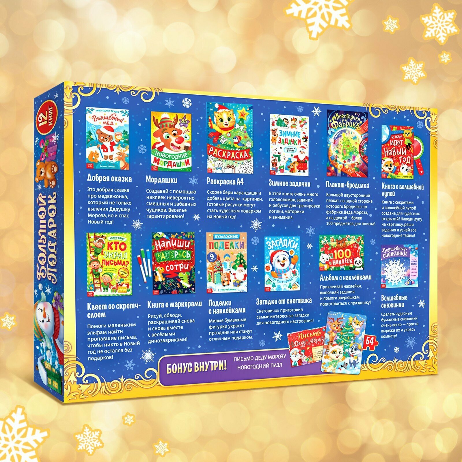| Комплектация | Новогодние книги 12 штук, письмо Деду Морозу, пазл новогодний |