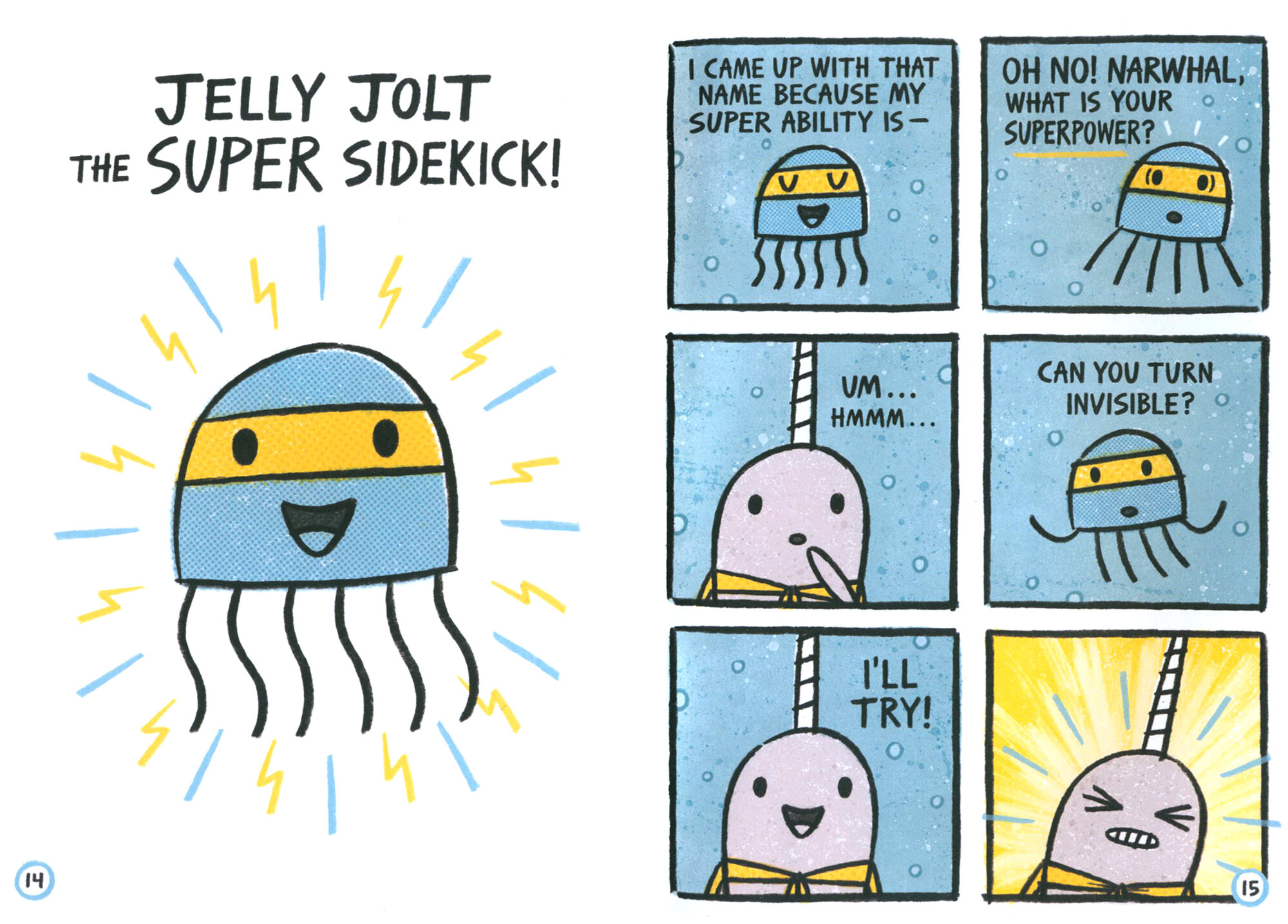 Happy-go-lucky Narwhal and no-nonsense Jelly find their inner superheroes in three new under-the-sea adventures. In the first story, Narwhal reveals his superhero alter-ego and enlists Jelly to help him figure out what his superpower is. Next, Narwhal uses his superpower to help a friend find his way back home. In the third story, Jelly is feeling blue and Narwhal comes to the rescue.