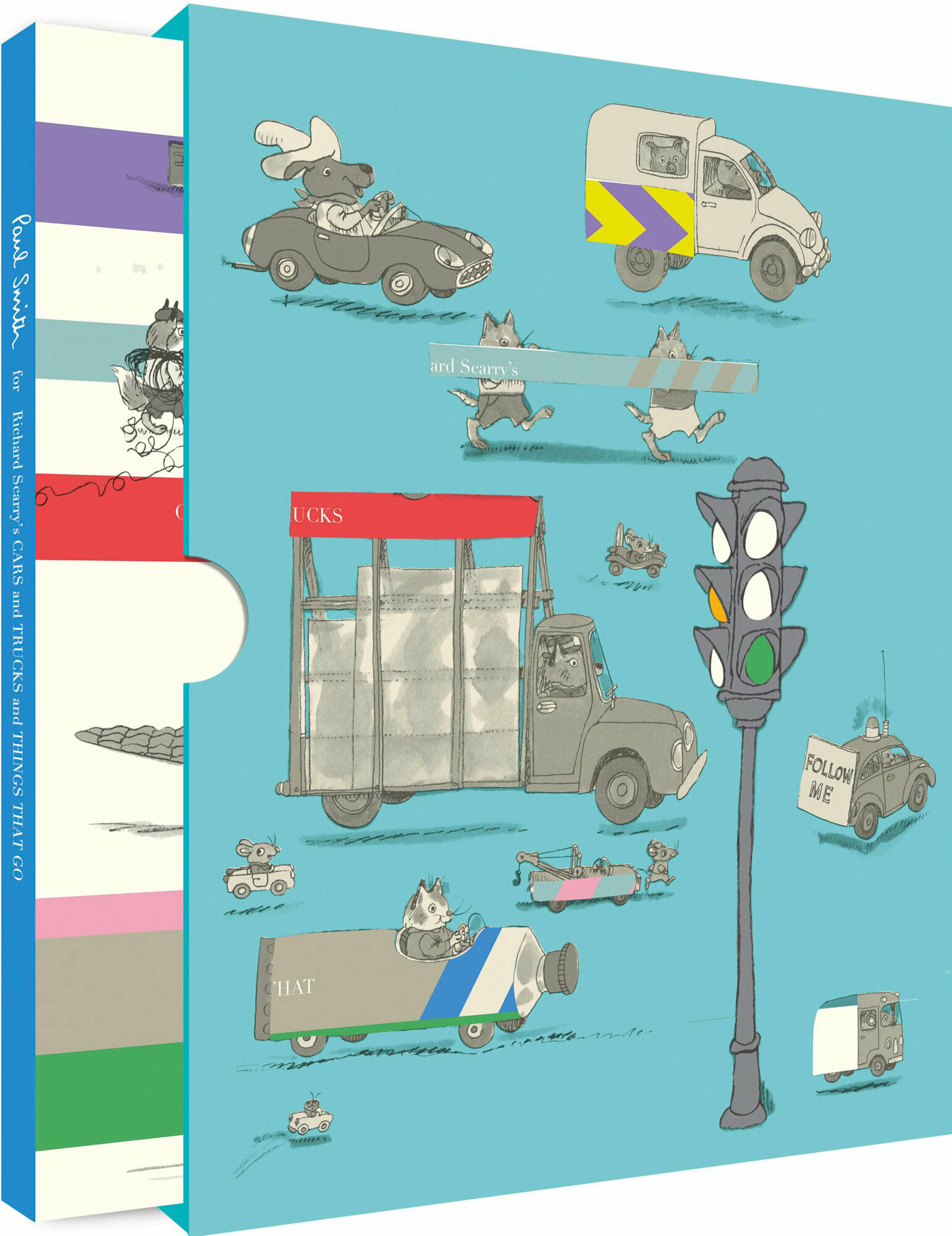 British designer, Paul Smith, has created a stunning new look for his favourite classic children’s book, Richard Scarry’s Cars and Trucks and Things that Go. This edition features a hardback copy of the book in a wonderful interactive slipcase.