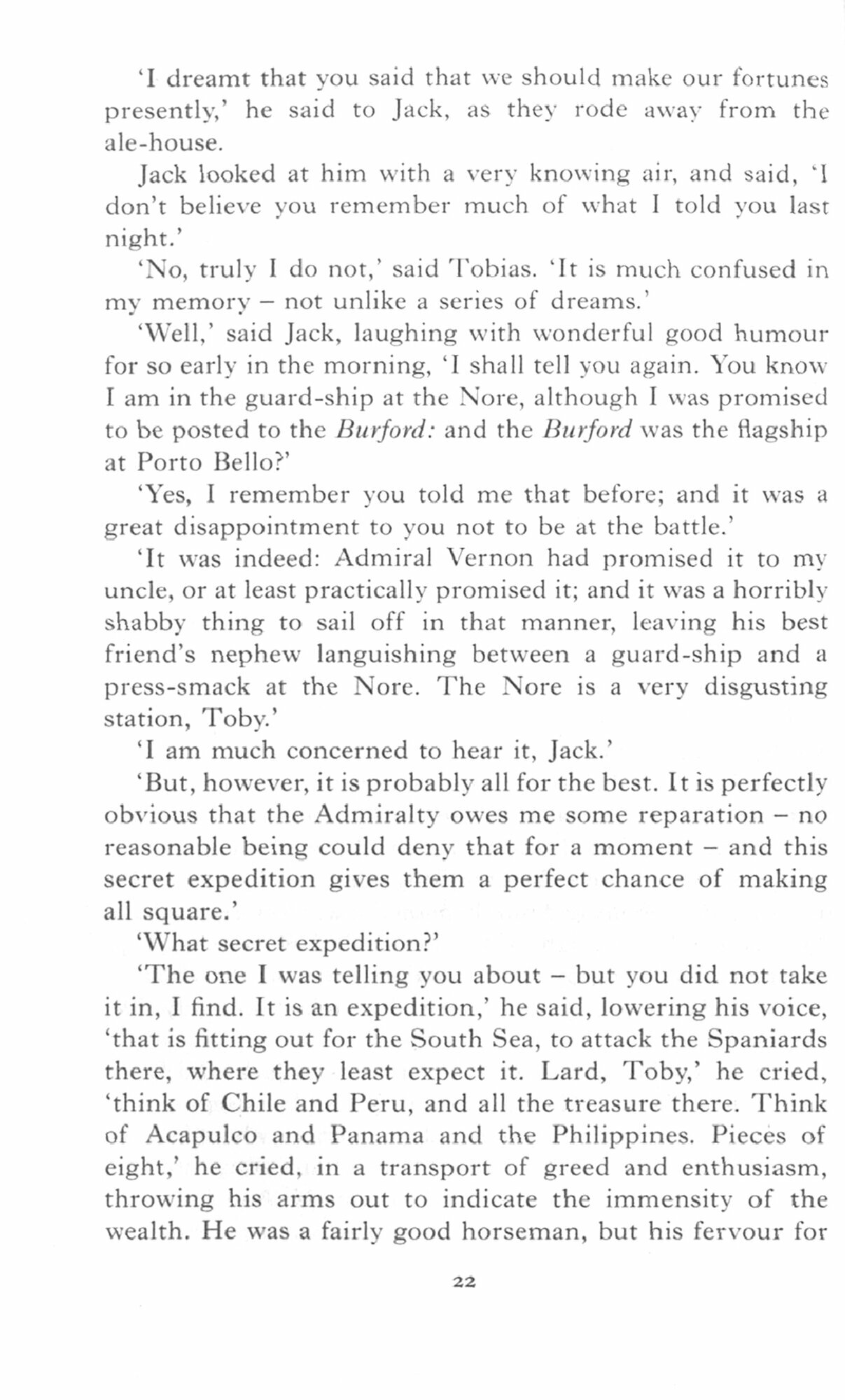 Admirers of O’Brian’s Aubrey-Maturin novels will see in Jack Byron a matter-of-fact, bluff precursor to the great Jack Aubrey. Whilst Toby, raging in Greek against a corrupt Member of Parliament, stripped by thieves in the Farthing Pie House, asking the Commodore to carry his snake, arousing the darkest suspicions in the Chilean Inquisition, is an amiable companion whose vagaries afford endless diversion on a hard and dramatic journey.