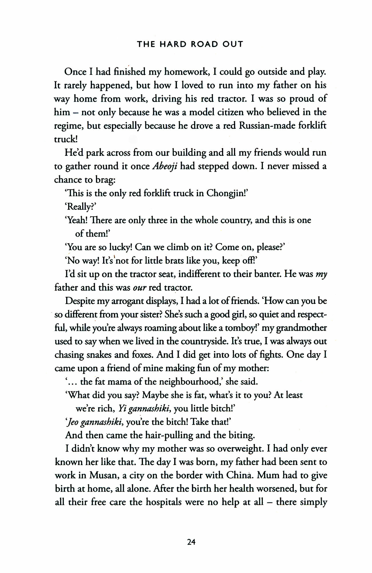 Clear-eyed and resolute, Jihyun’s extraordinary story reveals a Korea far removed from the talk of nuclear weapons and economic sanctions. She remains sanguine despite the hardship. Recalling life’s tiny pleasures even at her darkest moments, she manages to instill her tale with incredible grace and humanity.