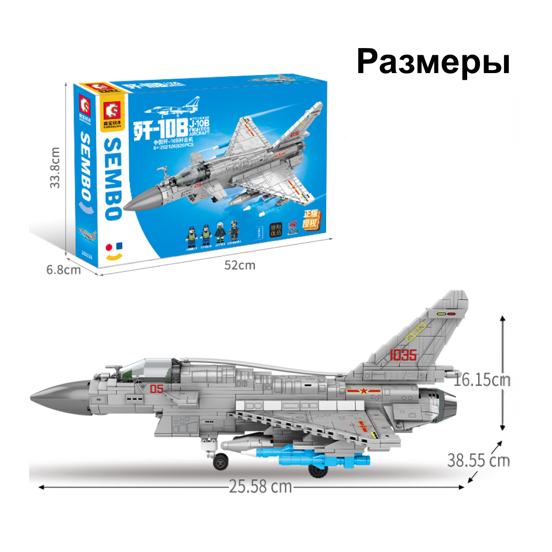 Конструктор Sembo Block 202126 самолет- истребитель J-10B 820 деталей.