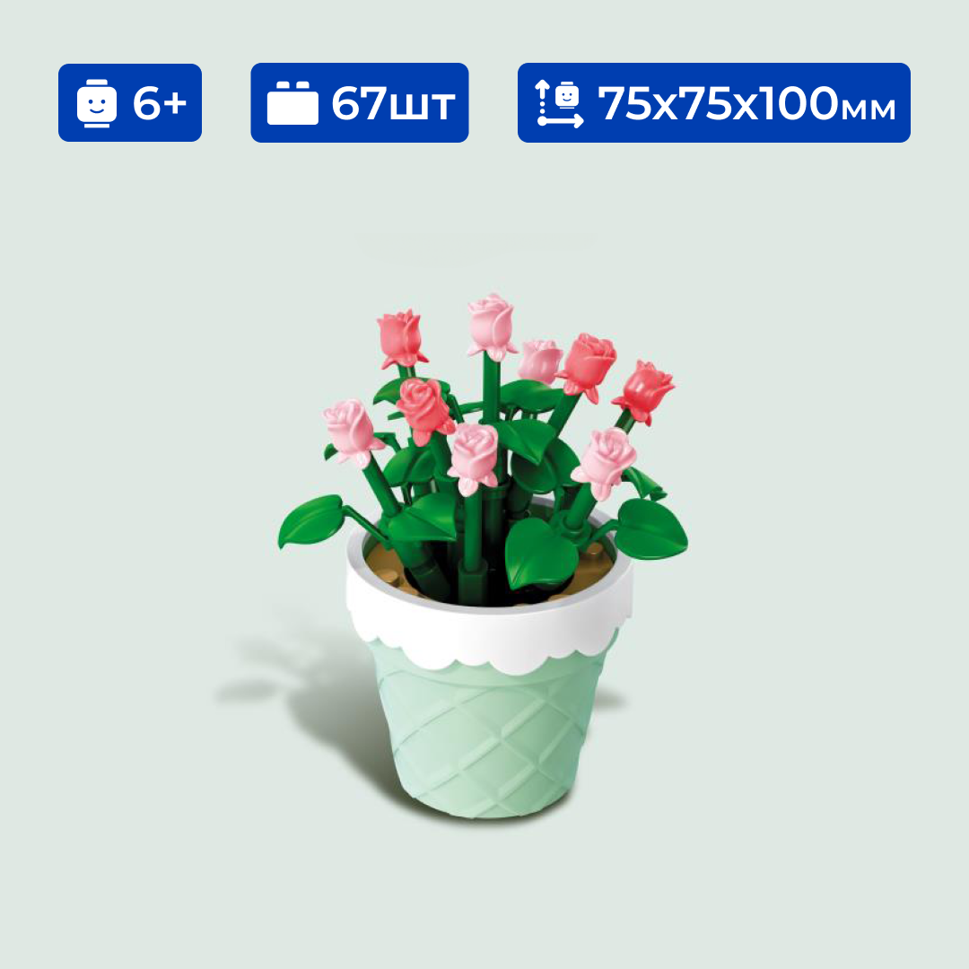 Конструктор цветок в горшке "Роза" от Sembo Block - это замечательный подарок для девочек от 6 лет. Этот набор включает в себя 67 деталей, которые позволяют собрать красивый и реалистичный цветок в горшке. Розовый цвет конструктора и его деталей создает атмосферу уюта и тепла, что особенно важно для маленьких девочек. Конструктор изготовлен из качественного пластика, что гарантирует его долговечность и безопасность для детей. Тематика конструктора - цветы, что позволяет развивать у детей любовь к природе и творчеству. Конструктор "Роза" от Sembo Block - это не просто игрушка, это возможность для ребенка проявить свою фантазию и создать уникальный цветок в горшке. Это отличный способ провести время с пользой и удовольствием, развивая свои творческие способности.