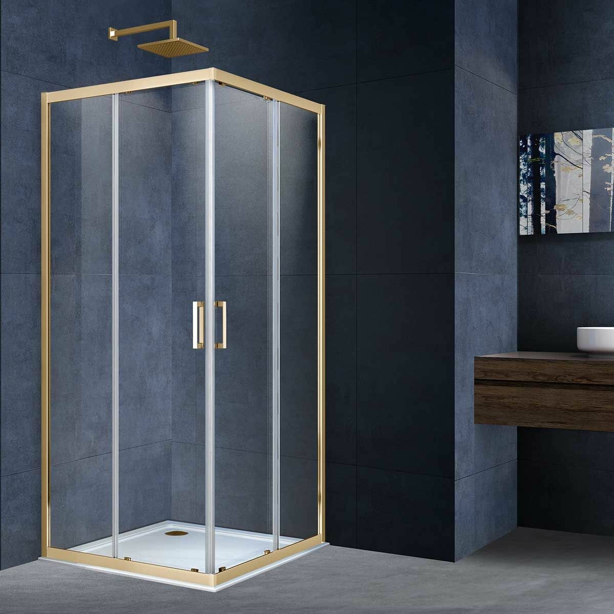 Модель: Alpha 90x80 VSS-3AL900CLG стекло прозрачное, профиль брашированное золото, без поддона