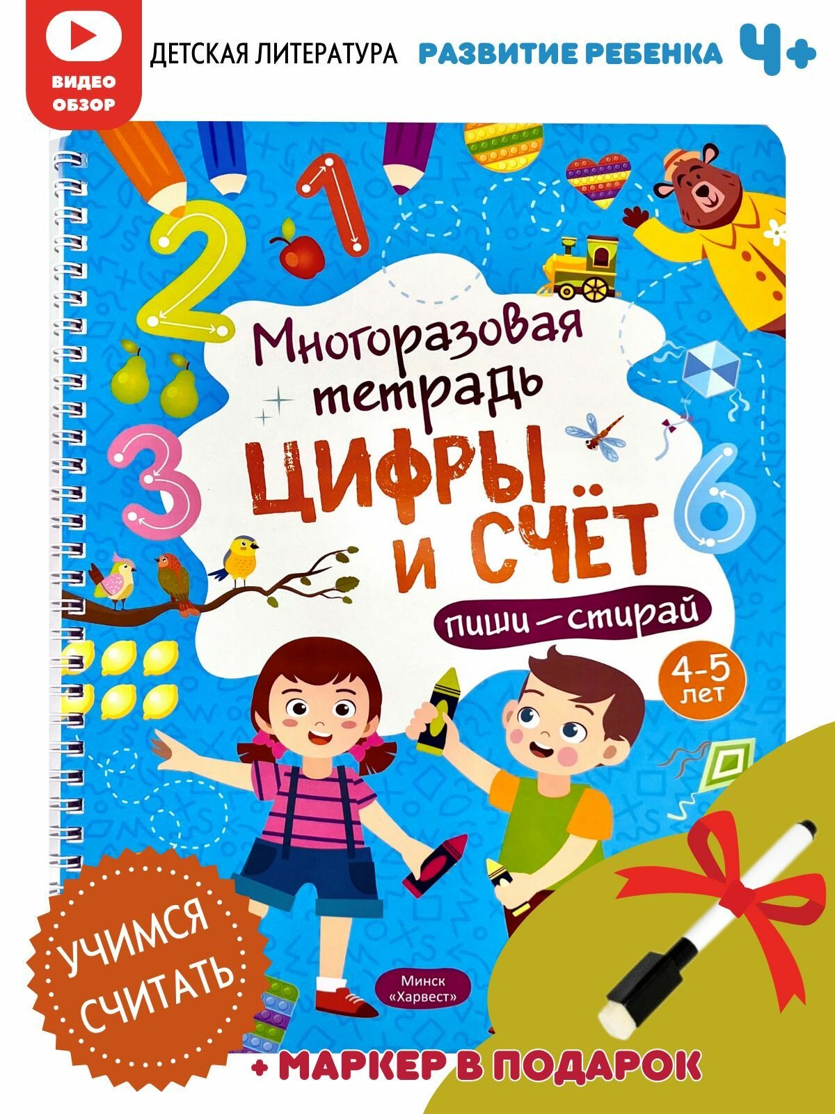 Многоразовая тетрадь 4-5 лет. Цифры и счет (Шепелевич Анастасия П.); Харвест, 2023