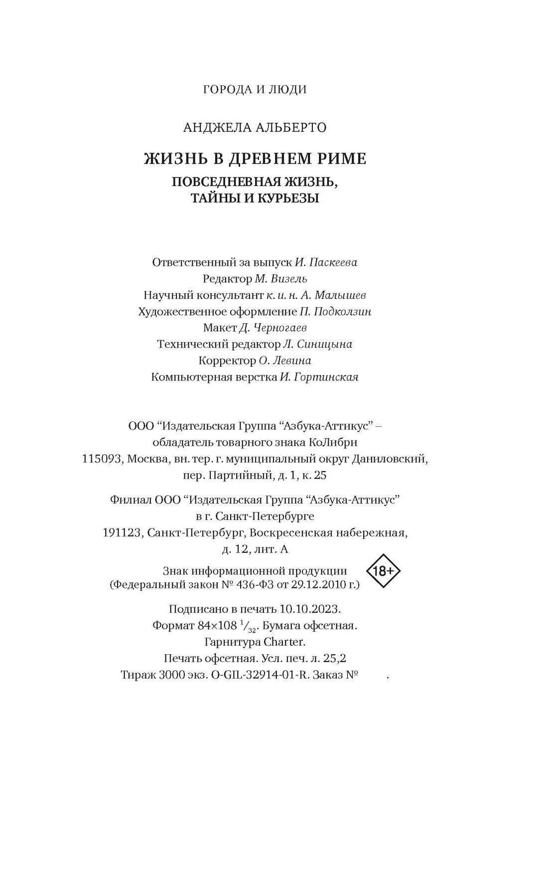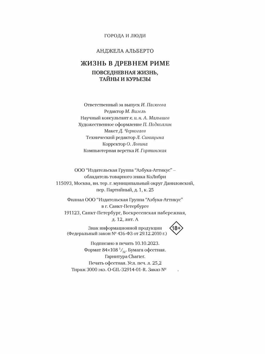 Книга: Жизнь в Древнем Риме (Анджела Альберто); КоЛибри, 2024