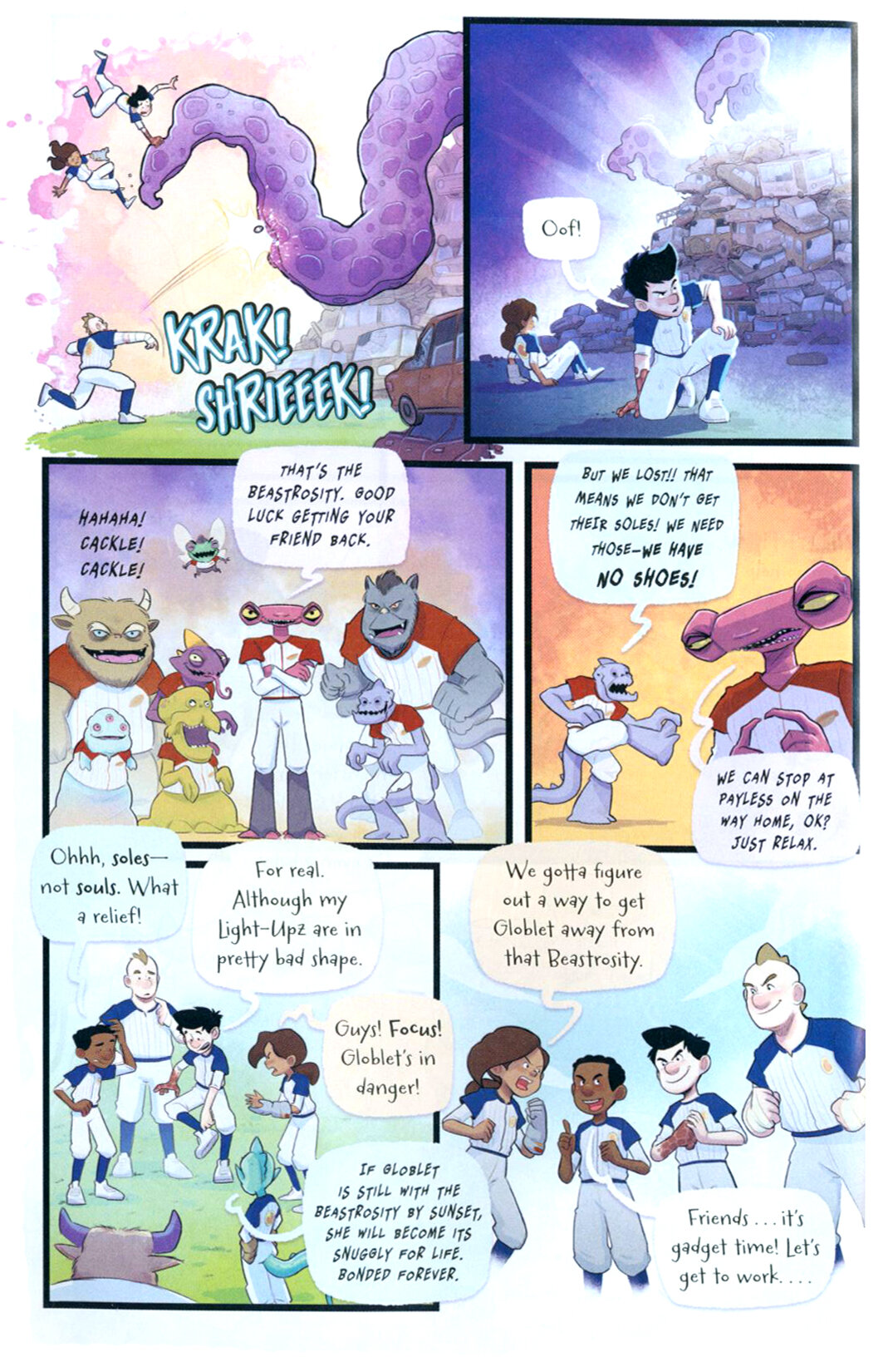 When a vicious monster attacks the tree house (rudely interrupting board game night!), our human heroes and their monster pals must decide who is brave enough to battle the beast alone. The only way to choose? An epic, end-of-the-world STORY SHOWDOWN!