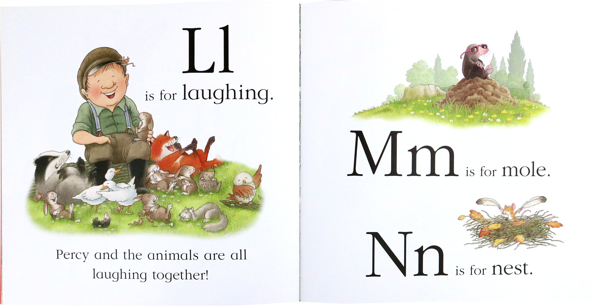 Learn to the letters of the alphabet with Percy the park keeper and his animal friends in this fun first concept book from highly regarded, award-winning author/illustrator Nick Butterworth.