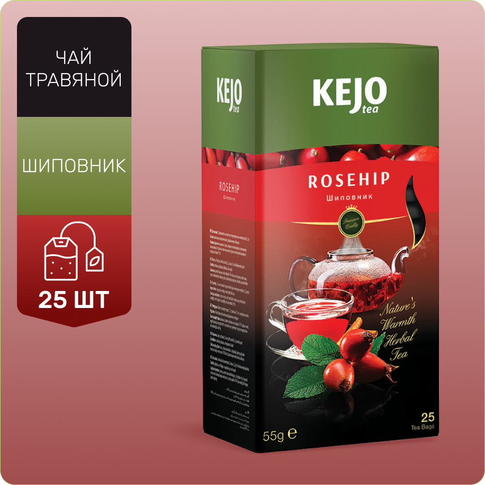 Шиповник KEJOfoods ROSEHIP с добавлением гибискуса в пакетиках 25*22гр картон Kejo Tea