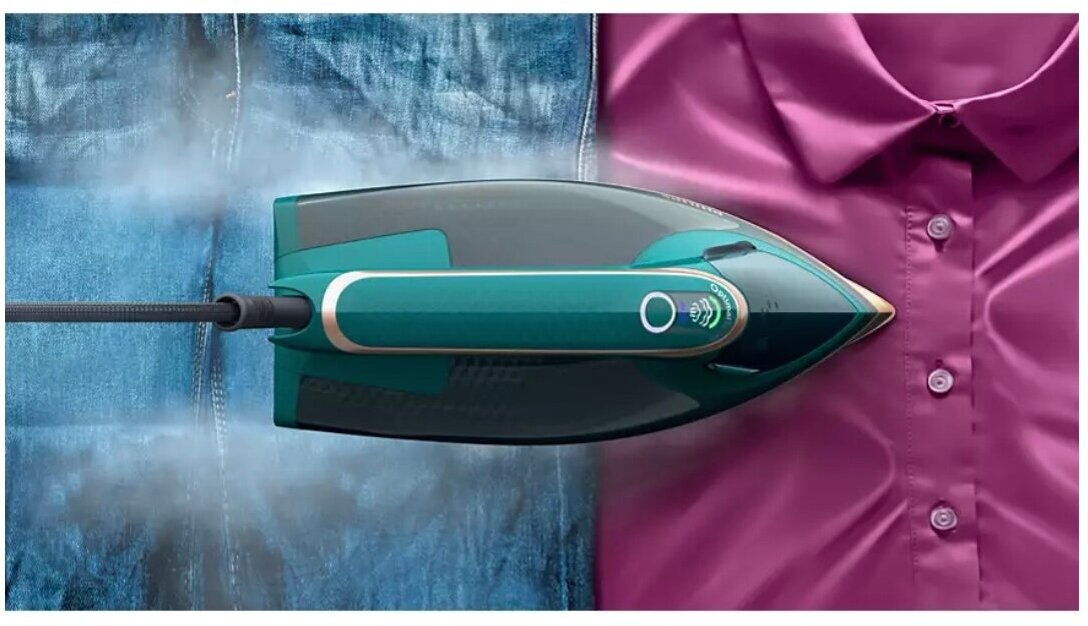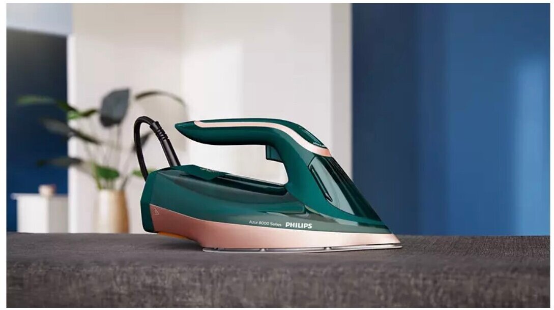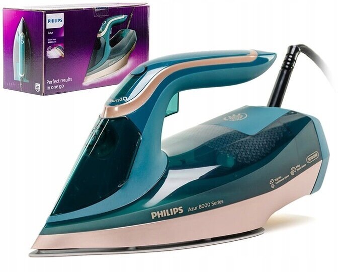 Утюг паровой Philips Azur DST8030/70 Сильнейший поток пара с интеллектуальным управлением мощностью Мощность — 3000 Вт Постоянная подача пара 70 г/мин Паровой удар в турборежиме 240 г Никакого риска прожечь ткань 3000 Вт для быстрого нагрева и безупречного результата Приступайте к процессу глажения моментально благодаря увеличенной мощности для быстрого нагрева. Паровой удар 240 г подойдет для разглаживания самых жестких складок на любой одежде. Благодаря функции вертикального отпаривания вы можете придавать свежесть одежде, висящей на плечиках, и удалять складки на шторах. Гладильная доска не потребуется. Вы можете быть спокойны: паровой утюг автоматически отключается через 8 минут. Резервуар увеличенного объема (350 мл) позволяет гладить дольше без добавления воды. Благодаря непрерывной подачей пара 70 г/мин вы больше не будете тратить силы впустую, а обработка вещей займет меньше времени. Одна оптимальная настройка для всех тканей, допускающих глаженье. Никакого риска прожечь ткань. Благодаря технологии OptimalTEMP вы не прожжете ни одну ткань, допускающую глаженье. Вы можете гладить, что угодно: от джинсов до шелковых вещей, от льна до кашемира — без риска, без предварительной сортировки одежды, в любом порядке и не дожидаясь регулировки температуры. Плавно разглаживайте складки благодаря супергладкой подошве SteamGlide Elite, которая не повреждает одежду. Супергладкая подошва SteamGlide Elite изготовлена из прочных материалов, устойчива к царапинам и проста в уходе. Гладьте быстро и без лишних усилий благодаря технологии датчика движения, который распознает движение утюга и автоматически подает пар. Быстрая очистка от накипи способствует поддержанию максимальной производительности за счет удаления отложений накипи и известкового налета.