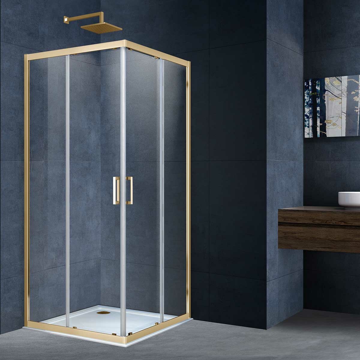 Модель: Alpha 100x100 VSS-3AL100CLG стекло прозрачное, профиль брашированное золото, без поддона