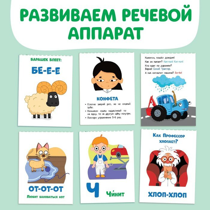 В набор входит 6 тематических книг, которые помогут вам в лёгкой игровой форме развить речевой аппарат малыша.