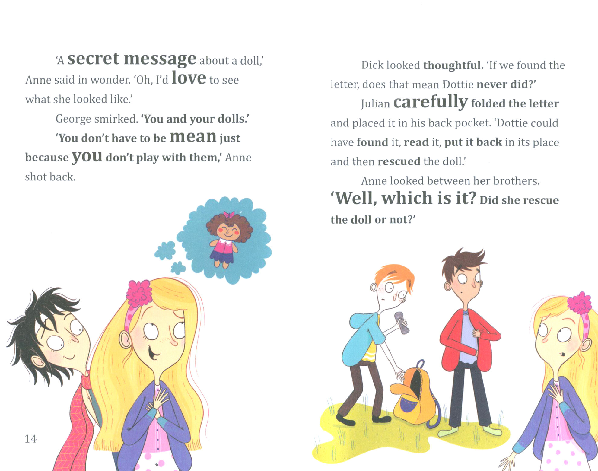 The Five have found a bottle with a message inside! It says that there's a hidden doll in the caves across from Kirrin Island, so the Five set off on a rescue mission. But the caves are dark and they soon lose their way ...