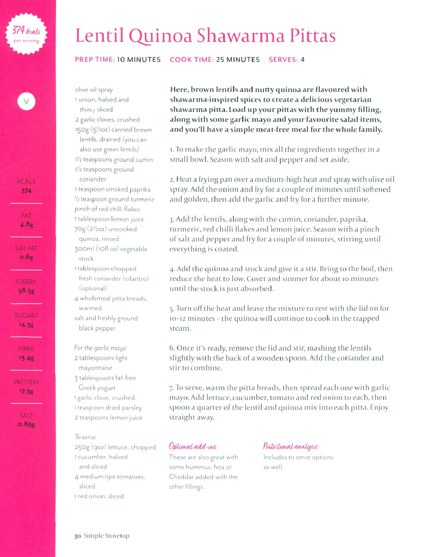 Recipes include: Piri Piri Halloumi Traybake, Slow Cooker Ropa Vieja, Cheesy Bolognese Gnocchi Bake, One-pot Moroccan-style Lamb Pilaf, Sticky Sriracha Tofu Bowls, Balsamic-roasted Beetroot with Feta and Orange Salad and Raspberry Lemon Loaf.