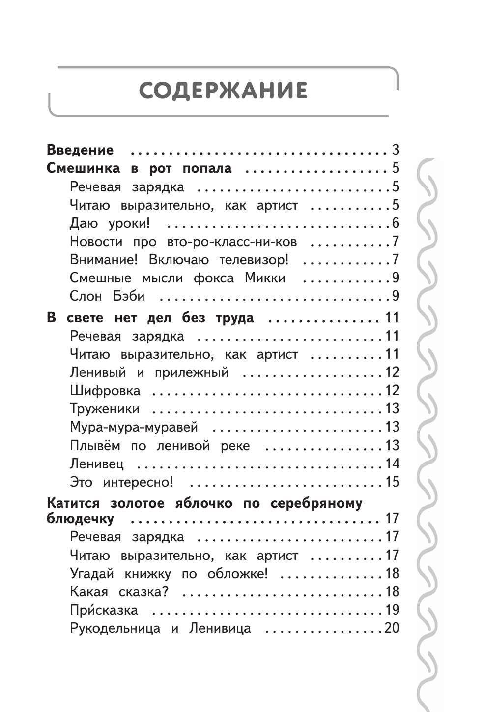 Каждый раздел предлагает разнообразные задания, которые помогут активизировать личный словарный запас ребёнка. Приводятся краткие сведения о происхождении слов, примеры их употребления, стихотворения и скороговорки для выразительного чтения вслух, а также тексты для расширения кругозора. Благодаря прогрессивной авторской методике второклассники не только усовершенствуют навык чтения, но и значительно обогатят свой словарь, улучшат речевые способности и существенно повысят общую эрудицию.