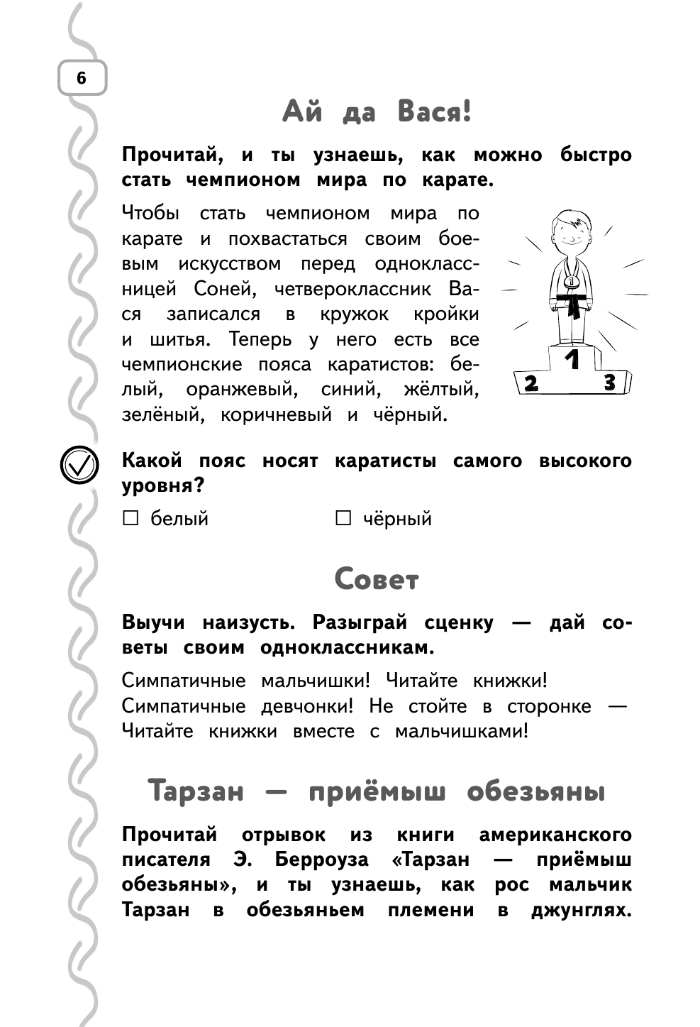 Задача развивающего тренажёра от издательства «ЭКСМО» — сделать из ученика 4 класса настоящего читателя, который бегло читает, понимает прочитанное и постоянно совершенствует навык чтения. В пособии собраны интересные и познавательные тексты для четвероклассников на стыке литературного чтения, русского языка и окружающего мира. Некоторые из них взяты из бестселлеров детской литературы, другие написаны автором, кандидатом филологических наук А. А. Бондаренко, признанным специалистом в области русской словесности и букваристики.