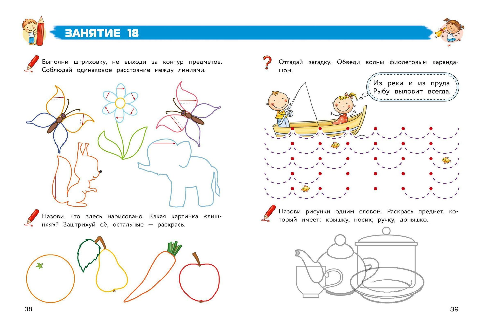 По книге можно заниматься несколько лет, если ребенку 4 года, а можно пройти ее за год, если ему скоро в школу. Во время занятий малыш не будет отвлекаться, так как все задания просты, доступны и даются в игровой форме.