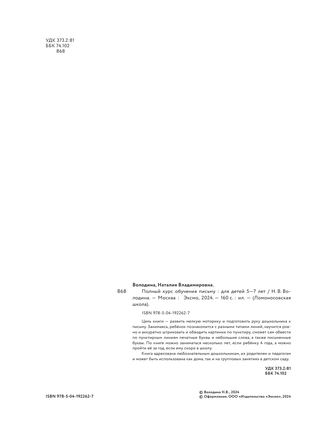 Полный курс обучения письму: для детей 5-7 лет (Володина Наталия Владимировна); ООО "Издательство "Эксмо", 2024
