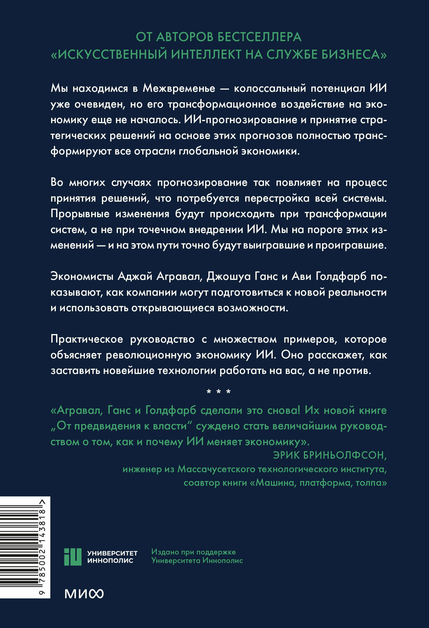 От предвидения к власти. Как ИИ-прогнозирование трансформирует экономику и как использовать его силу в своих целях (Аджай Агравал, Джошуа Ганс, Ави Голдфарб); Манн, Иванов и Фербер, 2024