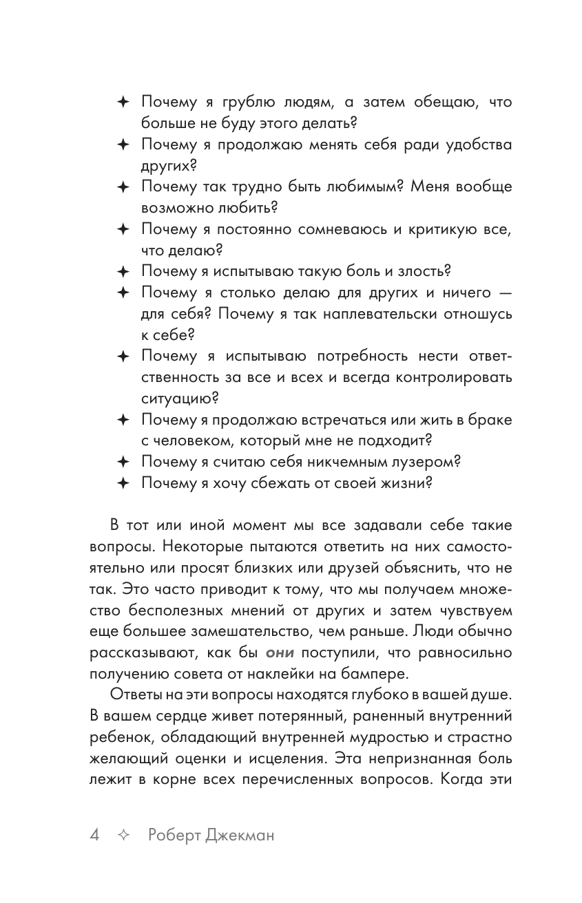 Помимо этого, вы прочтете истории людей, которые смогли справиться со своими детскими психологическими травмами, а также выполните упражнения, направленные на выявление и решение конкретных проблем.