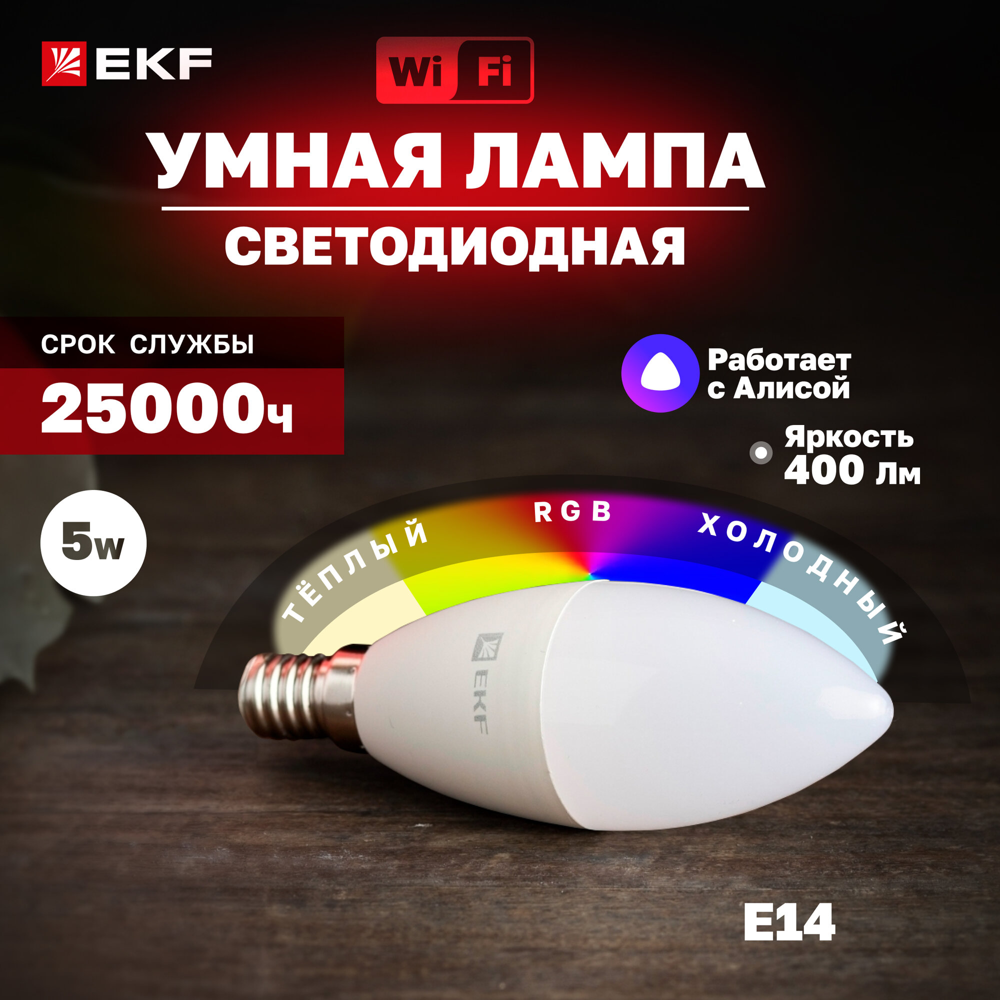 Лампа EKF Connect 5W WIFI RGBW E14 slwf-e14-rgbw