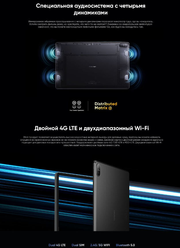Планшет 10.36" Chuwi 2000x1200/IPS/8GB/128GB/3G/4G/microSD до 512Gb/7000mAh/Android12 HiPad Max