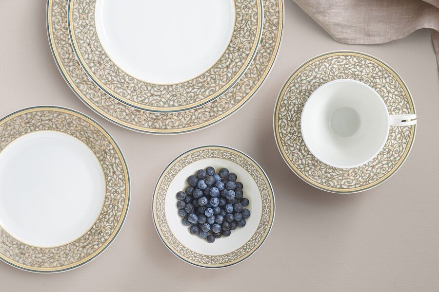 Сочетание растительного орнамента с замысловатым переплетением линий придаёт особую элегантность сервизам.