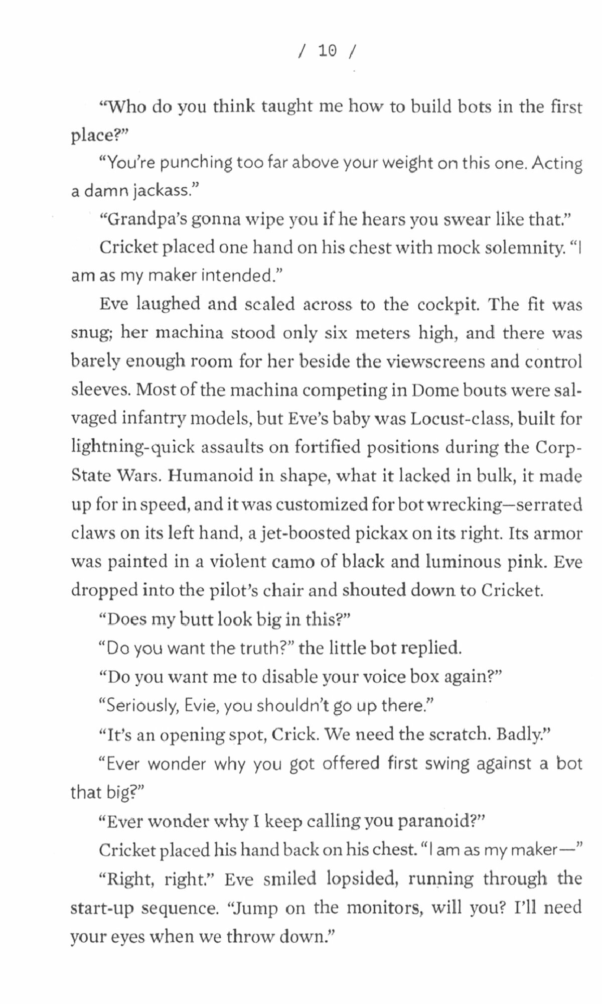 When Eve finds the ruins of an android boy named Ezekiel in the scrap pile she calls home, her entire world comes crashing down. With her best friend and her robotic sidekick in tow, she and Ezekiel will trek across deserts of irradiated glass, battle cyborg assassins, and scour abandoned megacities to save the ones she loves…and learn the dark secrets of her past.