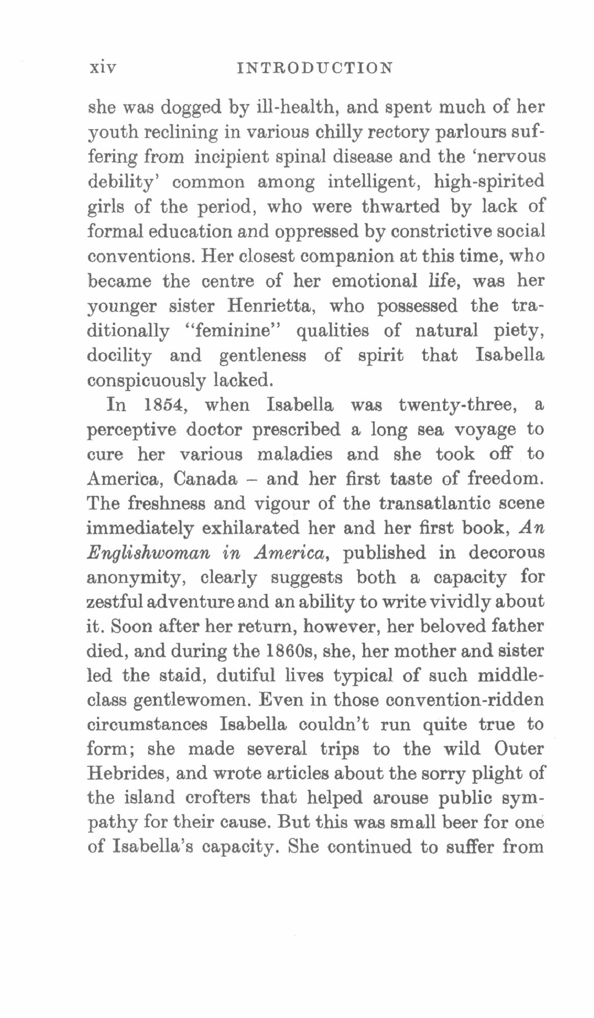 Born in 1831, Isabella, daughter of a clergyman, set off alone to the Antipodes in 1872 'in search of health' and found she had embarked on a life of adventurous travel. A year later she took a solo trip from San Francisco to the Rocky Mountains.