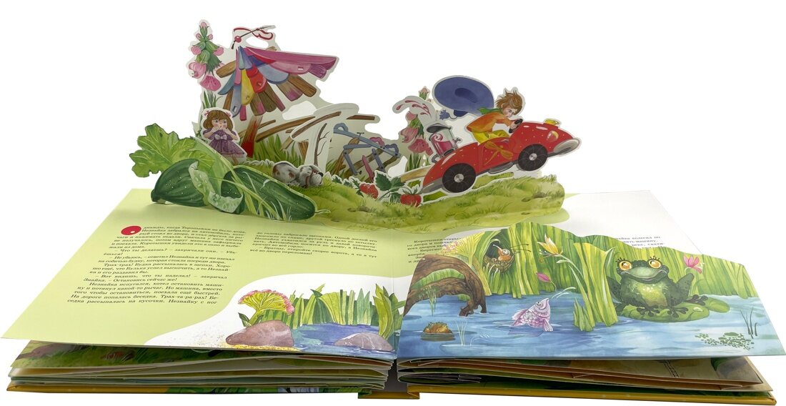 Сказочная история о приключениях Незнайки и его друзей оживёт на страницах этой удивительной книги. Раскрыв её, ребята окажутся в Цветочном городе и вместе с непоседливым коротышкой в синей шляпе будут веселиться, играть и учиться: попробуют себя в роли художника и музыканта, прокатятся на газированном автомобиле и даже отправятся в полёт на воздушном шаре. А объёмные иллюстрации и подвижные элементы на каждом развороте сделают путешествие юных читателей по любимому миру Незнайки ещё более ярким!