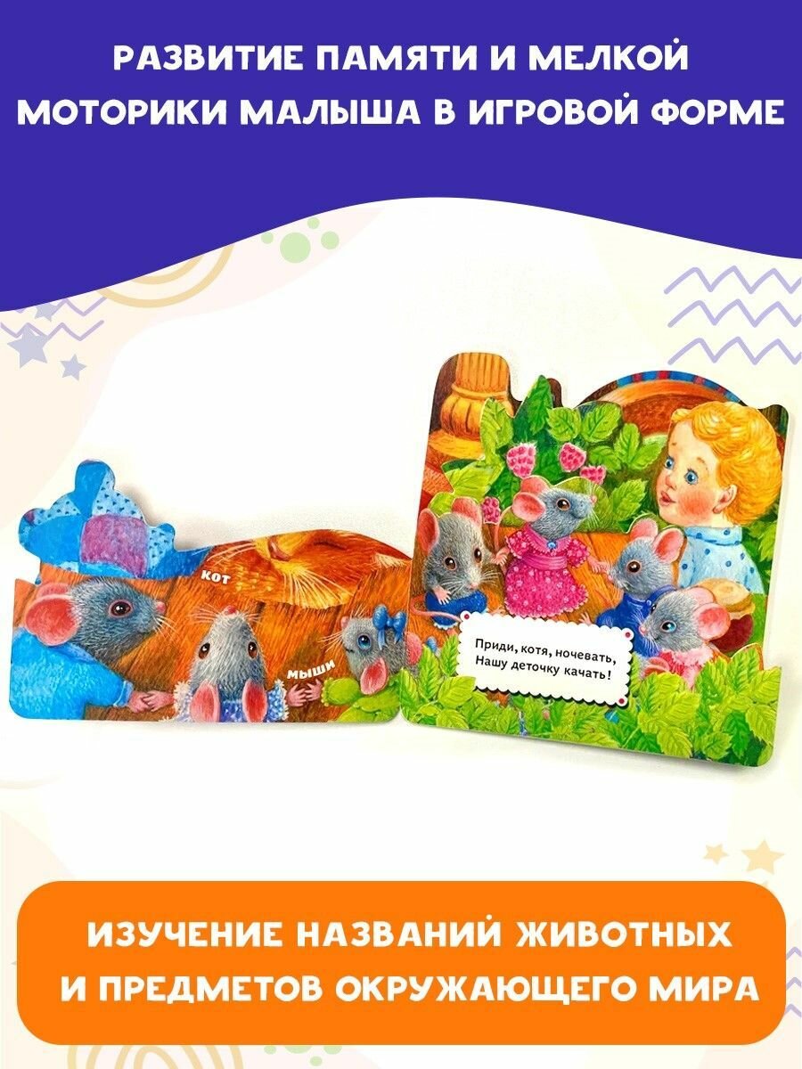 Коты ленивые и очень любят спать, а это — любимая детская колыбельная, где главный герой милый котик.В этой книжке необычного формата малыш через игру и чтение стихов получит первые знания о мире. Яркие иллюстрации на плотном картоне и индивидуальная вырубка на каждой страничке расскажут, как лучше готовиться ко сну, сделают чтение интересным.