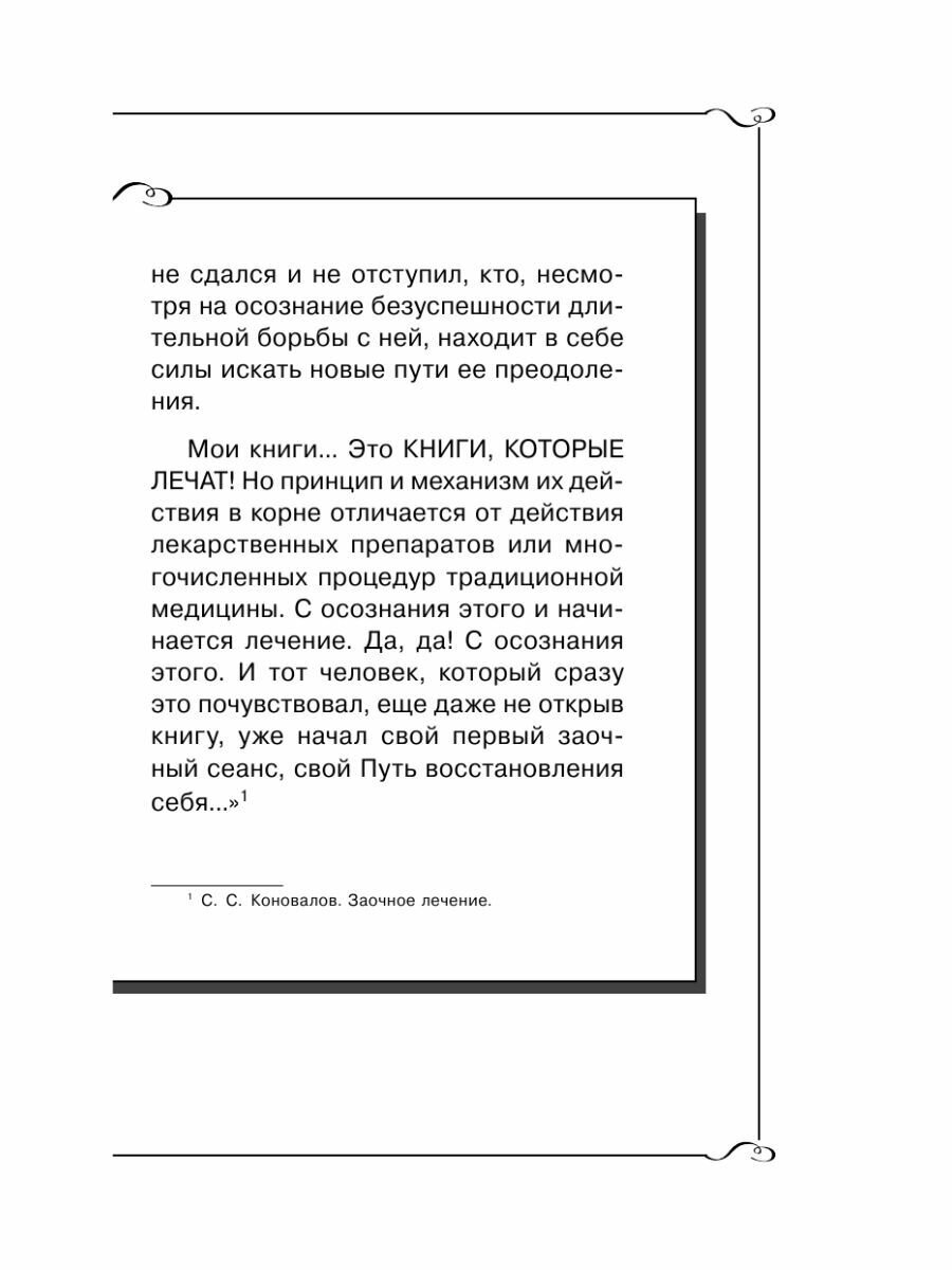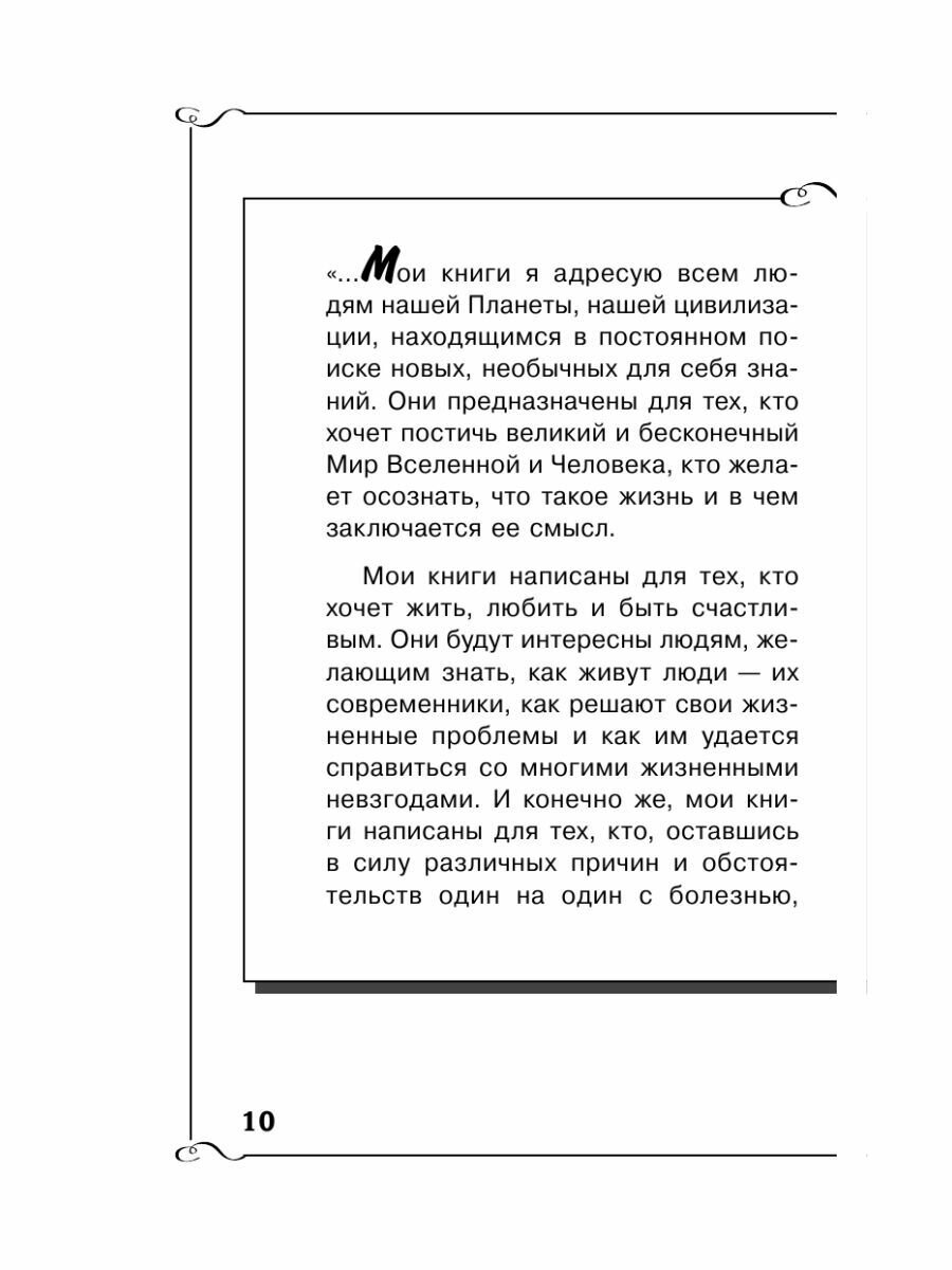 Читатель также найдет в книге "сжатую теорию": информацию о Вселенной и человеке с точки зрения Информационно-энергетического Учения, фрагменты бесед Доктора с залом, выдержки из писем — все то, что необходимо для настроя на лечение и его эффективного проведения.
