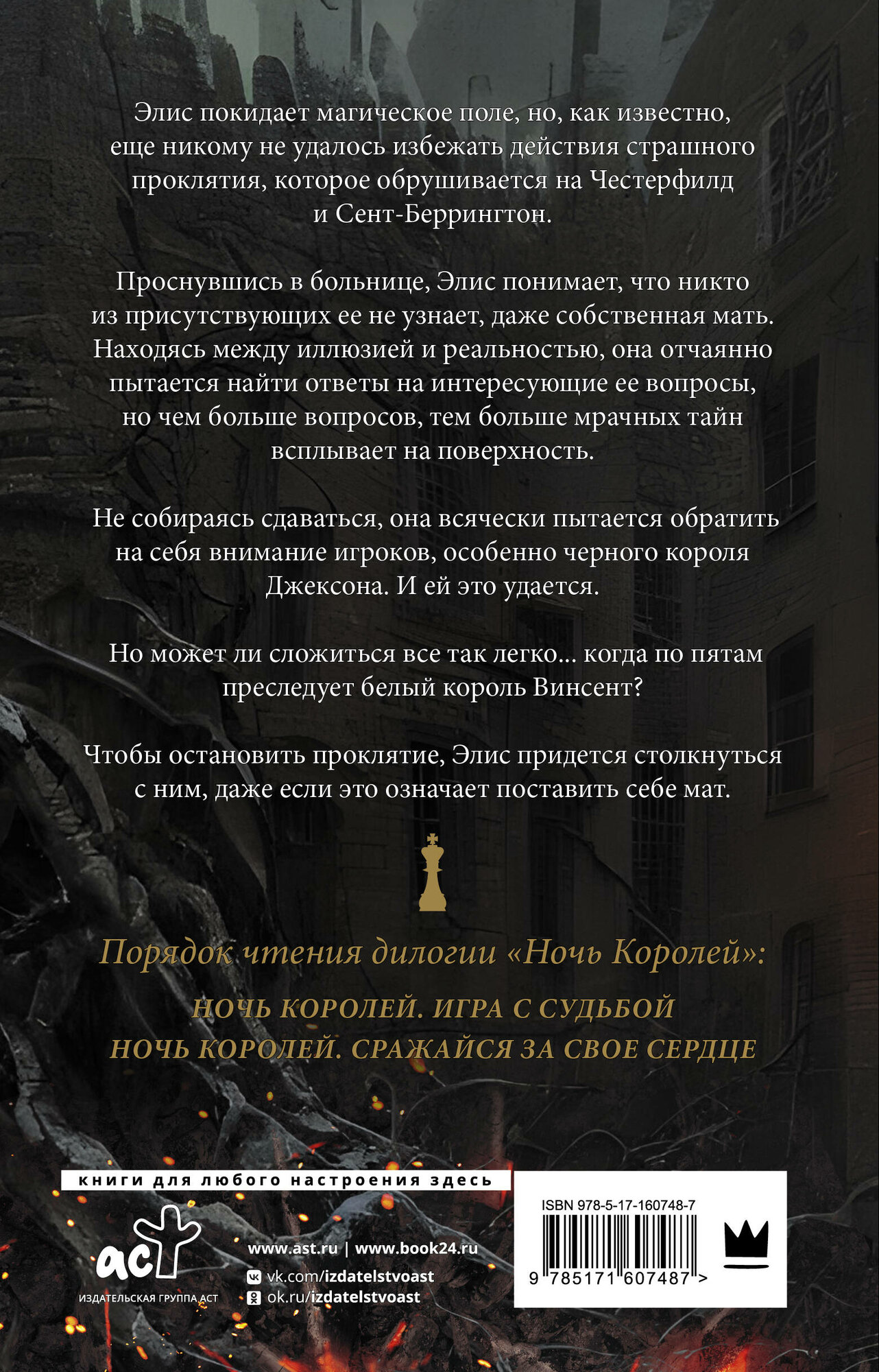 Элис покидает магическое поле, но, как известно, еще никому не удалось избежать действия страшного проклятия, которое обрушивается на Честерфилд и Сент-Беррингтон. Просыпаясь в больнице, Элис понимает, что никто из присутствующих ее не узнает, даже собственная мать. Находясь между иллюзией и реальностью, она отчаянно пытается найти ответы на интересующие ее вопросы, но чем больше вопросов, тем больше мрачных тайн всплывает на поверхность. Не собираясь сдаваться, она всячески пытается обратить на себя внимание игроков и особенно черного короля Джексона. И ей это удается. Но может ли сложиться все так легко. когда по пятам преследует белый король Винсент? Чтобы остановить проклятие, Элис придется столкнуться с ним, даже если это означает поставить себе мат.