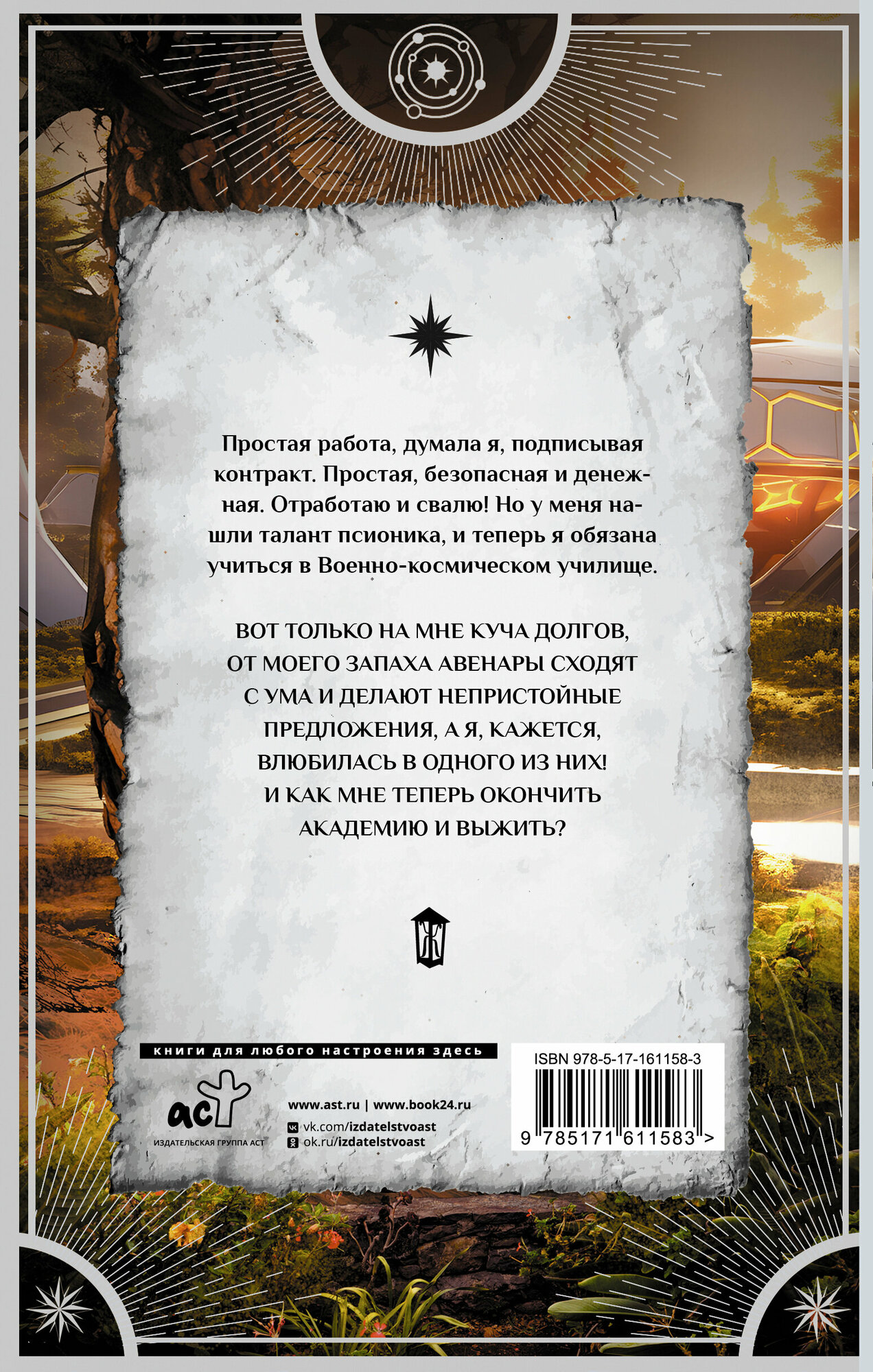 Простая работа, думала я, подписывая контракт. Простая, безопасная и денежная. Отработаю и свалю! Но у меня нашли талант псионика, и теперь я обязана учиться в Военно-космическом училище. Вот только на мне куча долгов, от моего запаха авенары сходят с ума и делают непристойные предложения, а я, кажется, влюбилась в одного из них! И как мне теперь окончить академию и выжить?