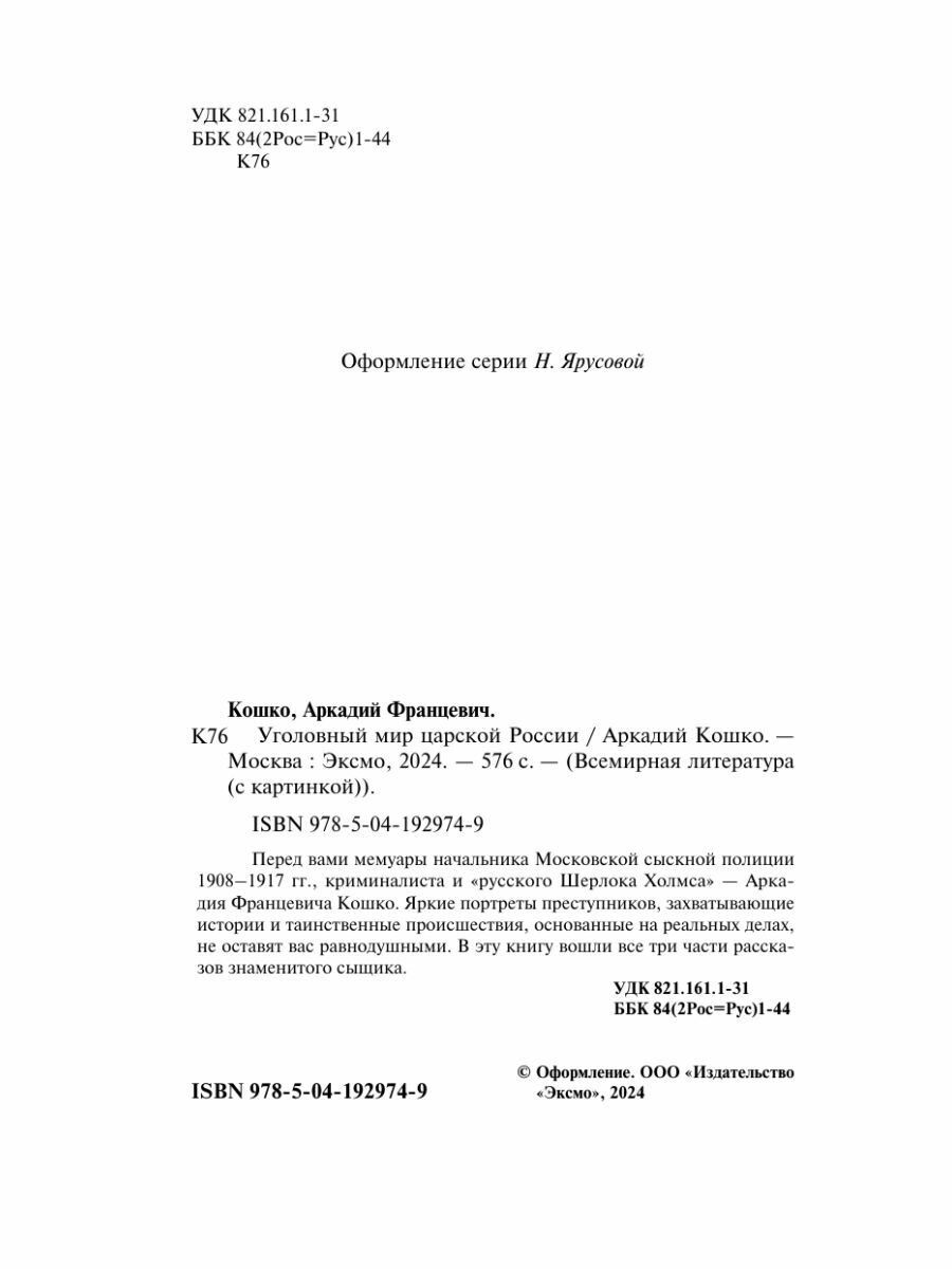 Уголовный мир царской России (Кошко Аркадий Францевич); ООО "Издательство "Эксмо", 2024