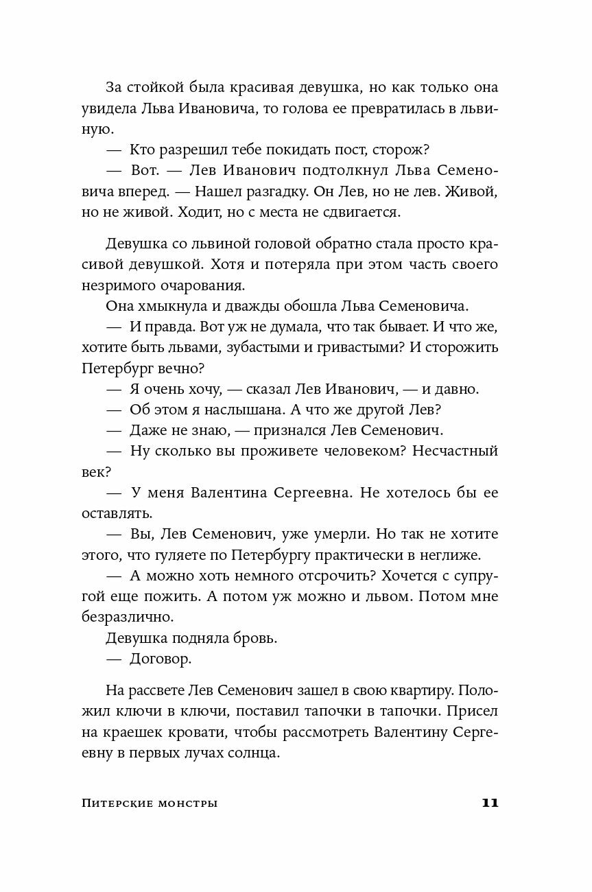 «Питерские монстры» — дебютная книга Веры Сороки, роман в рассказах, действие которого происходит в Петербурге. Реальное здесь смешивается с фантастическим: вместе с обыкновенными петербуржцами этот город населяют монстры, перевоплощенные львы и львицы, русалки, нимфы, призраки и другие фантастические твари — все они стали его неотъемлемой частью.