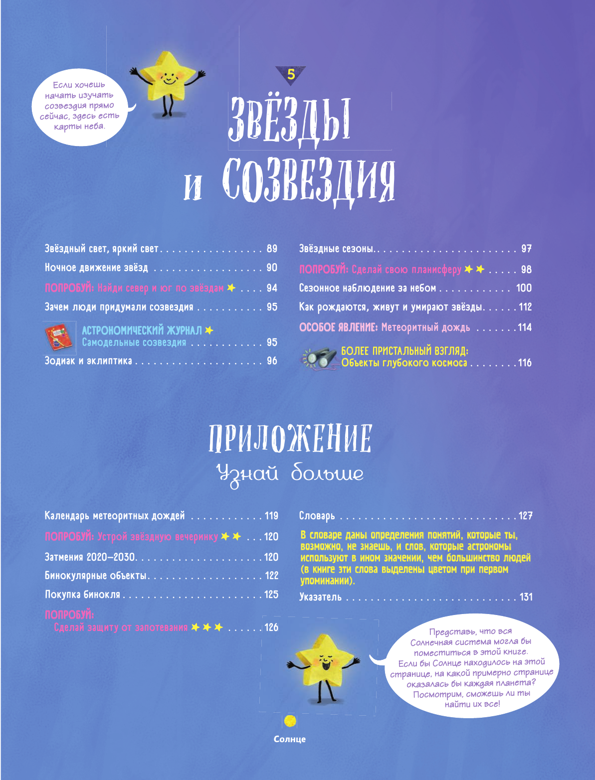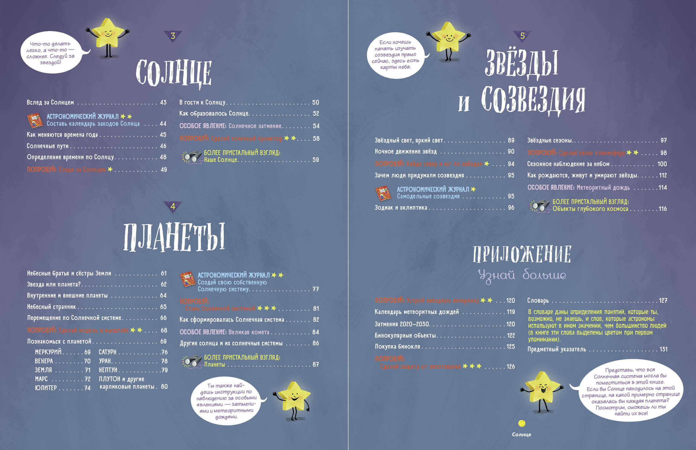Это невероятно красочное издание - прекрасный путеводитель по Солнечной системе и далёкому космосу! Книга объясняет, как образовались такие объекты, как Земля, Луна, Солнце, и раскрывает секреты многих природных явлений: затмений, северного сияния, метеоритных дождей... Читатели научатся наблюдать за космическими объектами невооружённым глазом и находить на ночном небе различные планеты. Карты небесных полушарий и собственноручно изготовленные астрономические инструменты помогут мастерски ориентироваться в звёздном небе! Эта книга будет интересна и полезна как школьникам, так и взрослым любителям космоса.