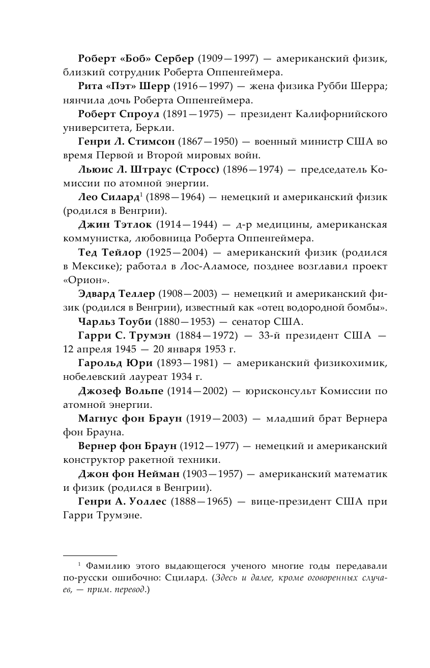 Новая книга Роберта Сойера, лауреата множества премий, таких как «Хьюго», «Небьюла» и «Аврора». Пока Роберт Оппенгеймер и его команда по Манхэттенскому проекту бьются над созданием атомной бомбы, Эдвард Теллер мечтает о еще более разрушительном оружии, основанном на ядерном синтезе — механизме, который питает Солнце. Исследования Теллера приводят к ужасающему открытию: к 2030 году Солнце выбросит свой внешний слой, уничтожив Землю. После бомбардировки Японии и конца войны команда Оппенгеймера, а также Альберт Эйнштейн и Вернер фон Браун объединяются — величайшие научные гении прошлого века начинают войну со временем, чтобы спасти наше будущее. Наполненный тщательными исследованиями и насыщенный реальными персонажами, роман «Оппенгеймер. Альтернатива» — это захватывающее дух приключение в реальной и альтернативной истории. «Мне понравилось! Я хорошо знаю историю этого периода и, более того, отделен от многих из персонажей романа всего одним-двумя рукопожатиями. Образы Сойера кажутся мне правдивыми. Рад, что стал одним из первых читателей этой книги!» — Ли Смолин, автор бестселлера «The Trouble with Physics» «Творческая перестройка фантасмагорической реальной биографии в фантасмагорическую альтернативную историю. Поклонники Оппенгеймера будут заинтригованы». — Мартин Дж. Шервин, соавтор удостоенной Пулитцеровской премии биографии «Американский Прометей: триумф и трагедия Дж. Роберта Оппенгеймера» «Поистине научно-фантастическое произведение альтернативной истории, основанное на решениях — и открытиях — великих физиков, написавших историю 20-го века: Эйнштейна, Ферми, Гёделя и Оппенгеймера. Ярко воплощенные, глубоко человечные персонажи, населяющие этот роман, дают блестящим размышлениям автора человеческие жизнь и кровь. Я прочитал эту книгу залпом и рекомендую вам сделать то же самое. Теперь же я намерен перечитать ее. Браво!» — С.М. Стирлинг «Мне чрезвычайно понравилось! Действительно здорово, даже не замечаешь, как листаешь страницы. Я как попал на крючок в начале, так и оставался до конца. Еще одно прекрасное дополнение к знаменитым книгам Сойера!» — Андре Борманис, продюсер сериалов «Орвилл» и «Космос» «Искусное и увлекательное сплетение нитей истории с подлинными персонажами середины 20-го века для создания увлекательного вымышленного повествования». — Джем Роллс, автор пьесы «Изобретатель всего» о Лео Силарде «Сойер блестяще и пронзительно изображает борьбу ученых, которые сами все это затеяли и, следовательно, были вынуждены нести неподъемное бремя». — Джеймс Кристи, председатель проекта «Ploughshares», участник Международной кампании за ликвидацию ядерного оружия, удостоенной Нобелевской премии мира «Сойер превзошел самого себя! Никто не смог бы взяться за этот проект с таким энтузиазмом и так углубиться в поиск истины, как этот выдающийся писатель. Я не читал еще столь полного и захватывающего повествования о жизни и деятельности Оппенгеймера». — Джонас Сол «Лучшая, на мой взгляд, из всех книг Сойера, с блестящими как исторической, так и научно-фантастической частями. Чрезвычайно умная экстраполяция, которая естественным образом проистекает из исследований, проведенных чрезвычайно умными людьми на пути к развитию атомной эры. И после того, как вы закончите читать роман, эти люди останутся в вашей памяти так