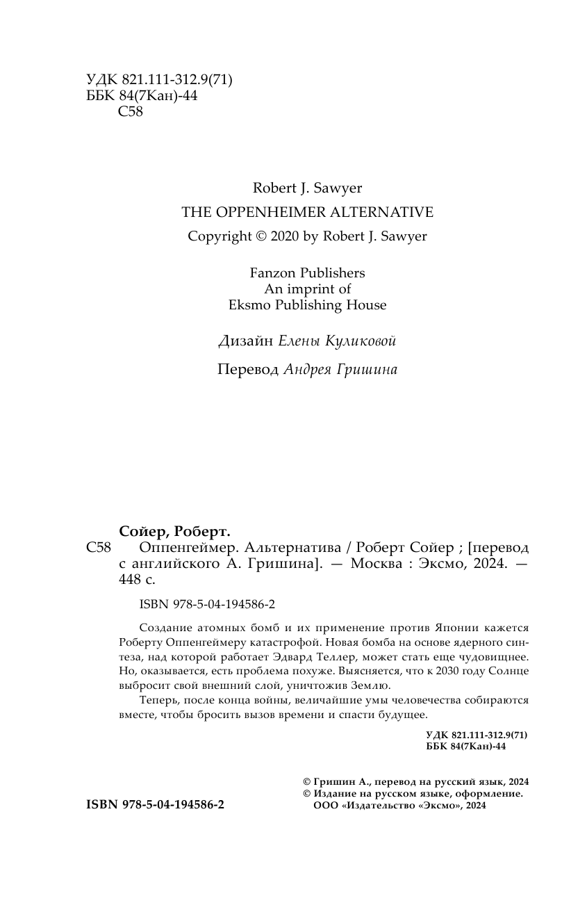 Оппенгеймер. Альтернатива (Роберт Сойер); Эксмо, Fanzon, Редакция 1, 2023