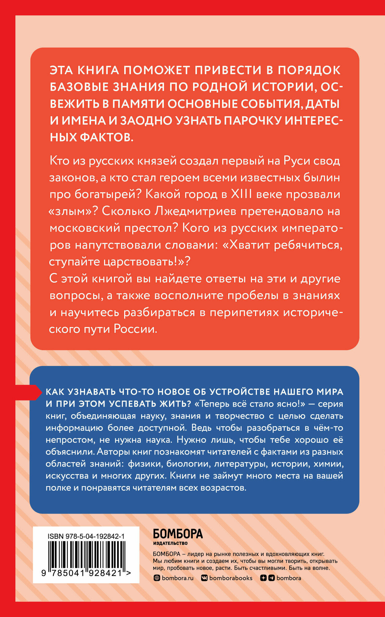 Серия книг «Теперь всё стало ясно!» легко и доступно расскажет о важных темах, соединит множество разрозненных фактов в вашей голове и наведет полный порядок в знаниях. Она приведет вас к самой сути каждого обсуждаемого вопроса с помощью удобного макета и понятного языка, вызовет огромную тягу к знаниям и желание постоянно учиться.