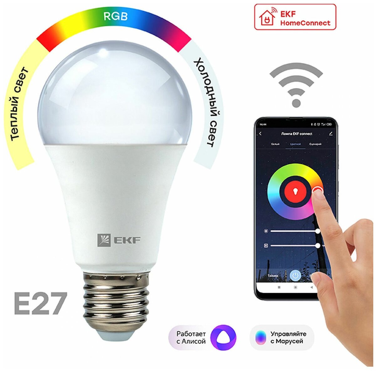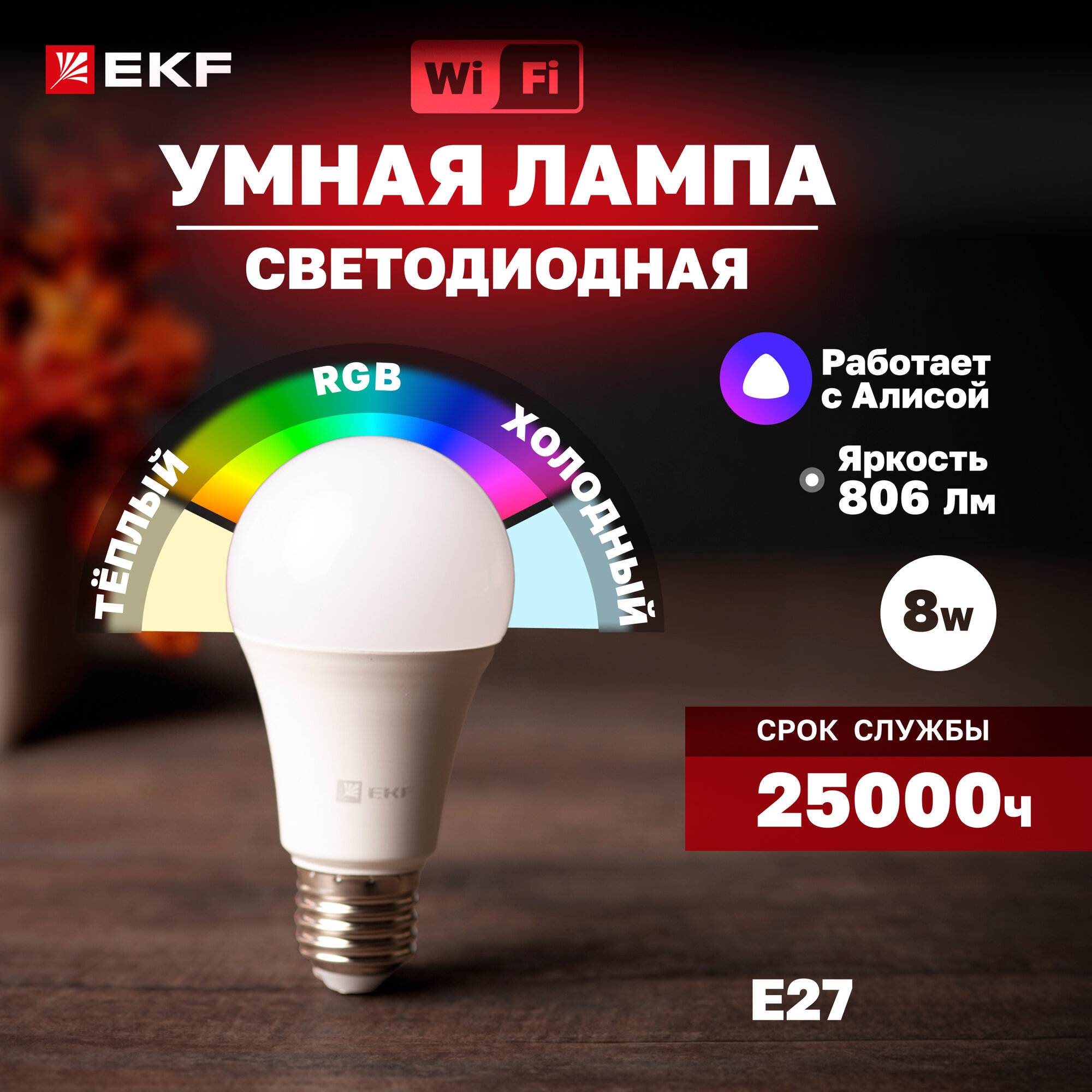 Лампа EKF Connect 8W WIFI RGBW E27 slwf-e27-rgbw