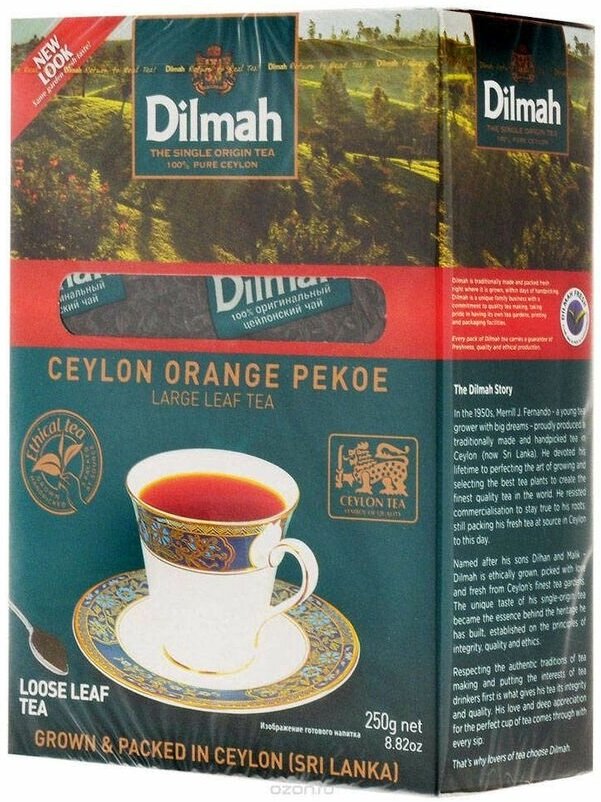 Dilmah - чай однородного происхождения. Только цейлонский чай попадает в каждую пачку Dilmah. Чай упаковывается в Шри-Ланке практически сразу после сбора чайного листа. Dilmah - настоящий этический чай. Доходы от продаж делятся с работниками чайных плантаций и сообществом. Dilmah сохраняет приверженность традиционному чаю. Вот почему его вкус такой особенный.