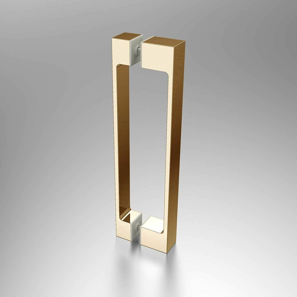 Модель: Alpha 90x90 стекло прозрачное, профиль брашированное золото