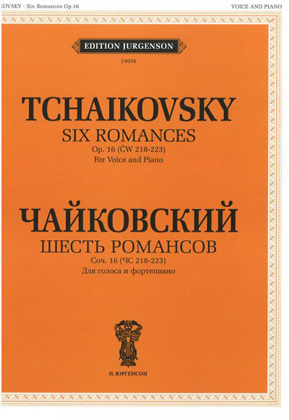 J0056 Чайковский П. И. Шесть романсов: Соч. 16 (ЧС 218-223): Для голоса и фортепиано, издательство "П. Юргенсон" Москва Романсы соч. 16 («Колыбельная песня», «Погоди!» и др.), написанные и 1872 году, публикуются в оригинальных тональностях. Содержание: Шесть романсов. Соч. 16 (ЧС 218-223) 1. Колыбельная песня. Слова А. Майкова 2. Погоди! Слова H. Грекова 3. Пойми хоть раз. Слова А. Фета 4. О, спой же ту песню. Слова А. Плещеева (из Ф. Гимене) 5. Так что же? Слова N.N. (П. Чайковского) 6. Новогреческая песня. Слова А. Майкова Количество страниц: 36. Формат: 60x100/8 (245x290мм). Переплет: мягкая обложка. Издательство: П. Юргенсон – Москва; 2007г.