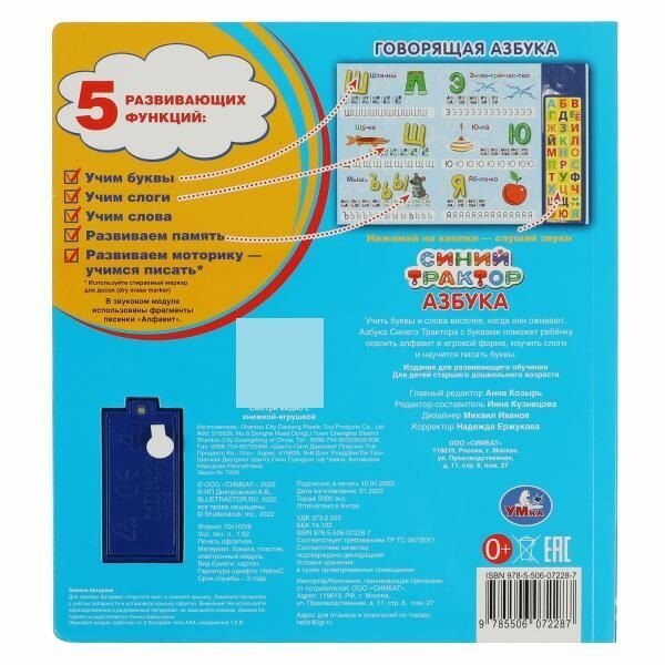 Книга Умка Синий трактор. Говорящая азбука. 30 песен (9785506072287) (Анна Козырь); Симбат, 2023