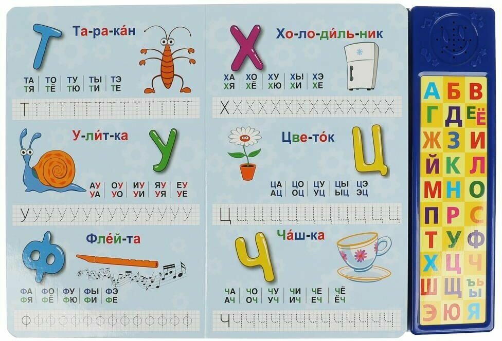 Озвученная книга «Синий Трактор. Говорящая азбука» ТМ «УМка» станет прекрасным обучающим подарком для маленьких поклонников мультсериала про приключения весёлого Трактора: - модуль с 30 звуковыми кнопками - учим азбуку - пишем буквы На каждой страничке этой занимательной книги ребёнка ждут крупные красивые иллюстрации с буквами и персонажами из любимого мультсериала. Малыш с удовольствием будет нажимать на кнопки, слушать звучание букв, рассматривать яркие страницы и в лёгкой игровой форме учить азбуку. Кроме того, с помощью стираемого маркера (не входит в комплект) он сможет потренировать написания букв. Книга сделана из плотного картона, поэтому мамы могут не опасаться, что ребёнок порвёт странички. Занятия с озвученной книгой ТМ «УМка» развивают: - слуховое восприятие - навык чтения - фантазию - образное мышление - внимание - память Формат: 213 х 235 мм. Объём: 10 стр. Материал: пластмасса + картон. Работает от 3-х батареек типа LR1130 (в комплекте). Рекомендовано детям старшего дошкольного возраста.